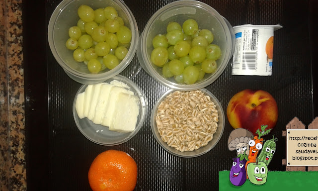 - Uvas, queijo fatiado e uma tangerina;