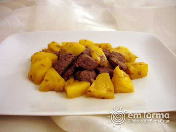 Num recipiente a parte dissolva a farinha de arroz no molho de soja e junte o açúcar, misture bem e adicione à carne.